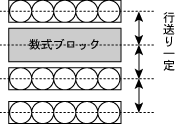 〔行送り〕は、指定された行送りにて数式ブロックを組みます。